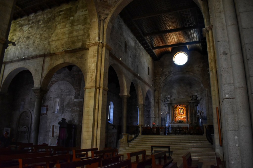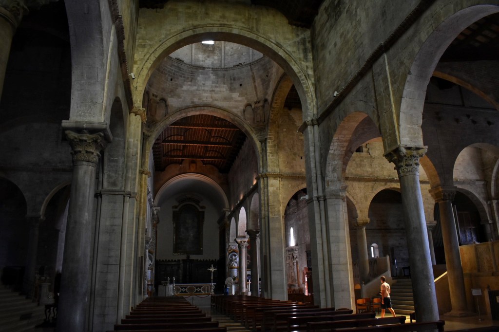 Ich besuche schon früh am Vormittag auf dem Monte Guasco den Dom S. Ciriaco. Er befindet sich im ältesten Siedlungsteil der Stadt und ist dem heiligen Judas Cyriacus geweiht, der übrigens auch von den Orthodoxen Kirchen als Heiliger verehrt wird. Durch den Stadtteil führen steile Stufen bis zum Domplatz. Der Dom ist zwischen dem 11. und 13. Jahrhundert entstanden und hat als Grundriss ein griechisches Kreuz.