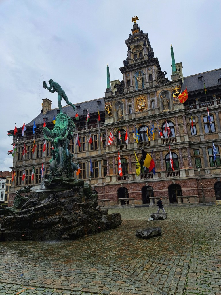 Meine heutige Etappe führt mich knapp 95 km über Antwerpen nach Roosendaal in den Niederlanden. Die belgische Hafenstadt Antwerpen war im 15 und 16 Jahrhundert eine der größten Städte der Welt und ist Heimat beutender Künstler. Am Ende des 2. Weltkriegs war die Stadt Ziel der sog. Ardennenoffensive der Nazis. Ziel war es den Hafen zu erobern, um den Nachschub der Alliierten aufzahlten. Der Plan scheiterte. Berühmt ist Antwerpen vor allem für den historischen Stadtkern. Eines der bekanntesten Sehenswürdigkeiten und Fotomotiv ist das Rathaus.