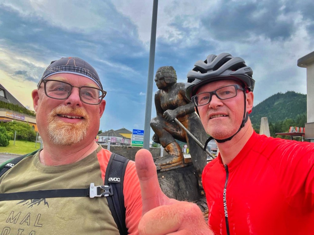 Heute ging’s bei durchschnittlich 34 Grad auf den Semmering. Gott sei Dank musste ich die Fahrt nicht alleine machen. Die Hitze war extrem. Laut Radcomputer lag die heutige Maximal-Temperatur bei 43 Grad. Die insgesamt 1.000 hm waren so eine Qual, dass sich mein Kreislauf auch im Hotelzimmer nicht beruhigen konnte. Begleitet (ohne Gepäck) hat mich mein Freund Andreas, dem ich unendlich dankbar bin, dass er mit mir unterwegs war. Andreas ist mit dem Zug wieder nach Mödling gefahren. Morgen geht’s also alleine weiter.